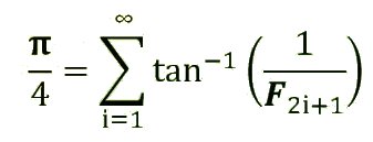 π/4 = arctg(1/2) + arctg(1/5) + arctg(1/13) + arctg(1/34) + arctg(1/55)