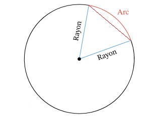 • La circonférence d’un cercle = 2 * π * R (R étant le rayon du cercle)
