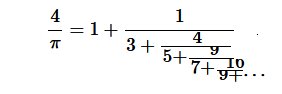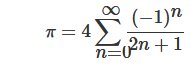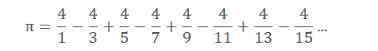 (Alternance des signes + et – avec division du chiffre 1 par (tous) les nombres impairs ; le tout multiplié par 4).