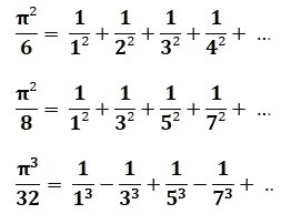 Les formules suivantes sont assez faciles à comprendre. A chaque fois, il est très facile d’écrire l’algorithme correspondant et d’écrire un petit programme permettant de réaliser le calcul associé (bien entendu, plus on ‘prolonge’ le calcul, meilleure sera l’approximation de la valeur de π) :