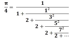 • Et enfin, une autre définition par fractions continues (William Brouncker) :