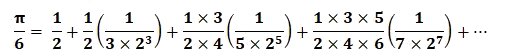 A noter : Il existe d’autres formule de π attribuées à Isaac Newton. D’autre part, cette formule converge rapidement ; on obtient en quelques termes une très bonne approximation de la valeur de π.
