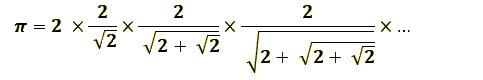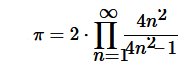 (Les premiers termes sont les suivants : 2 x ( 4/3 . 16/15 . 36/35 . 64/63 . 100/99 . 144/143 …. Notons qu’il faut ‘pousser’ le calcul relativement loin afin d’obtenir une approximation réaliste de π).