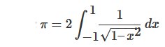 Par cette méthode nous trouvons π = 3,14155278 (donc avec une précision de 4 chiffres après la virgule).
